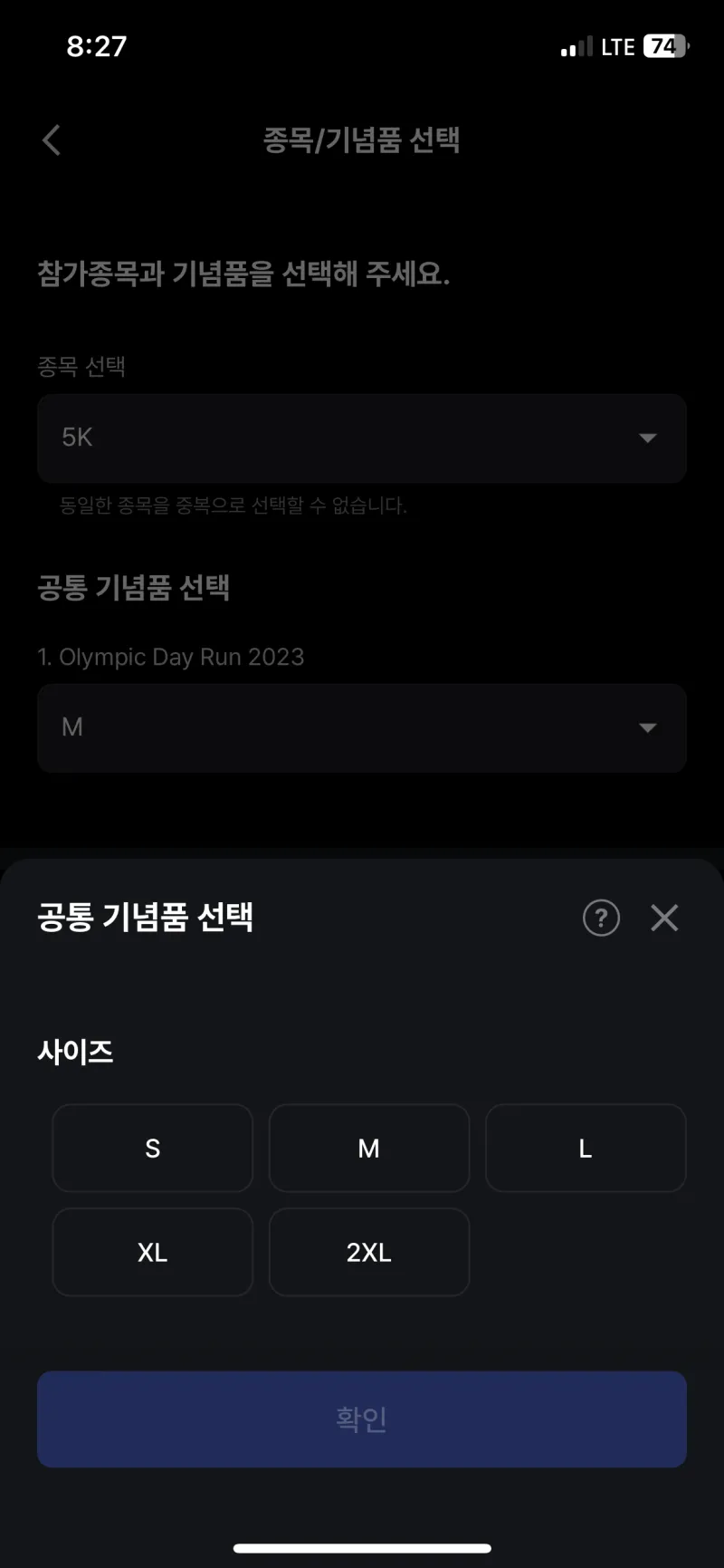 4. 약관에 동의한 후 코스와 기념품 사이즈를 선택해 주세요.