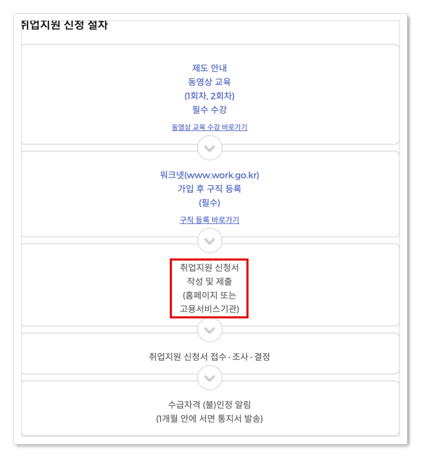 구직등록을 완료한 후 국민취업지원제도 사이트에 방문하여 지원신청을 눌러주세요.