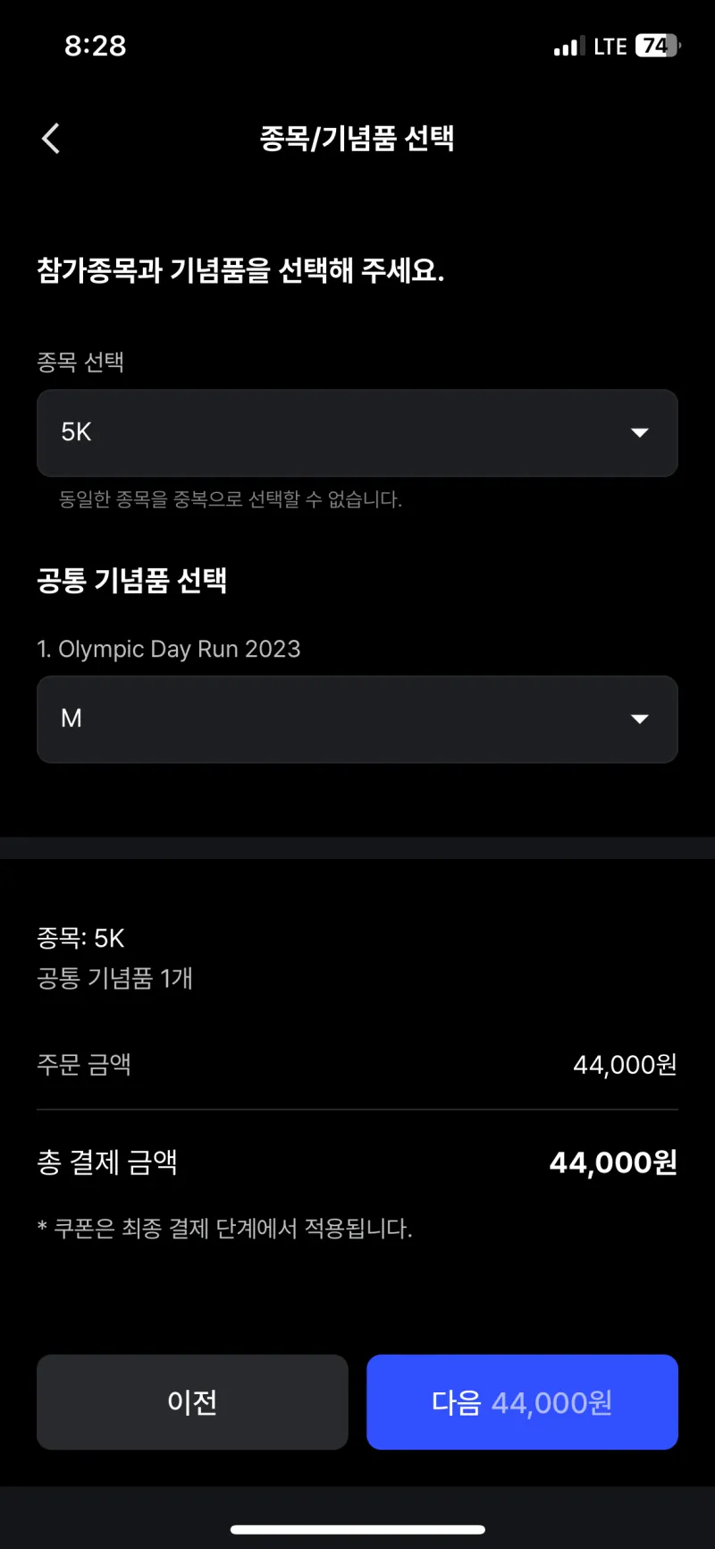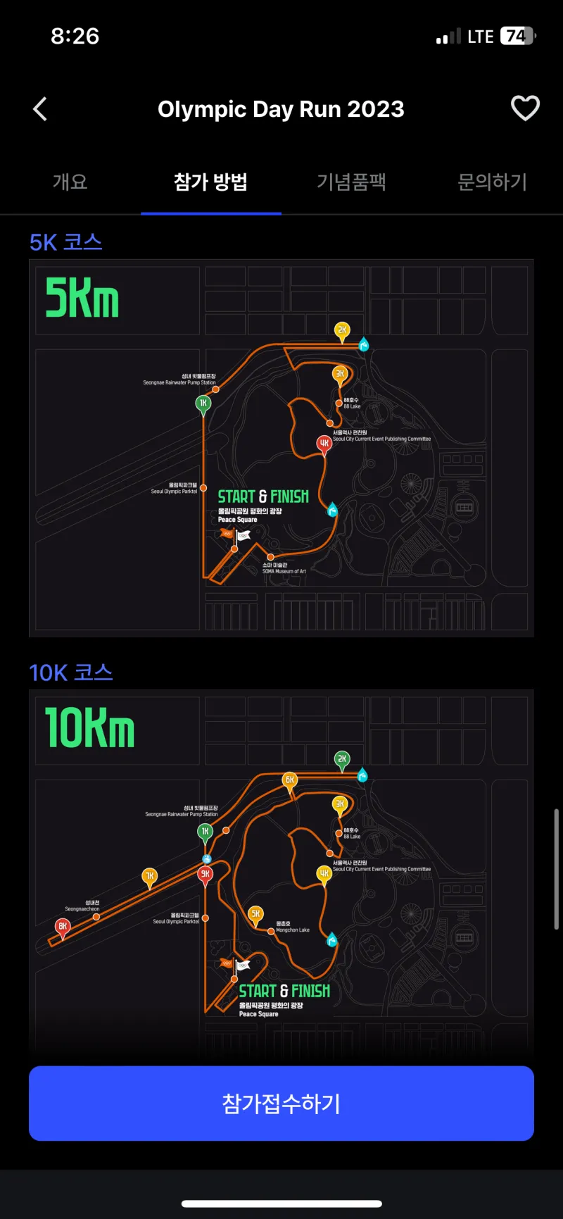 코스는 5Km, 10Km 중에 고를 수 있습니다.